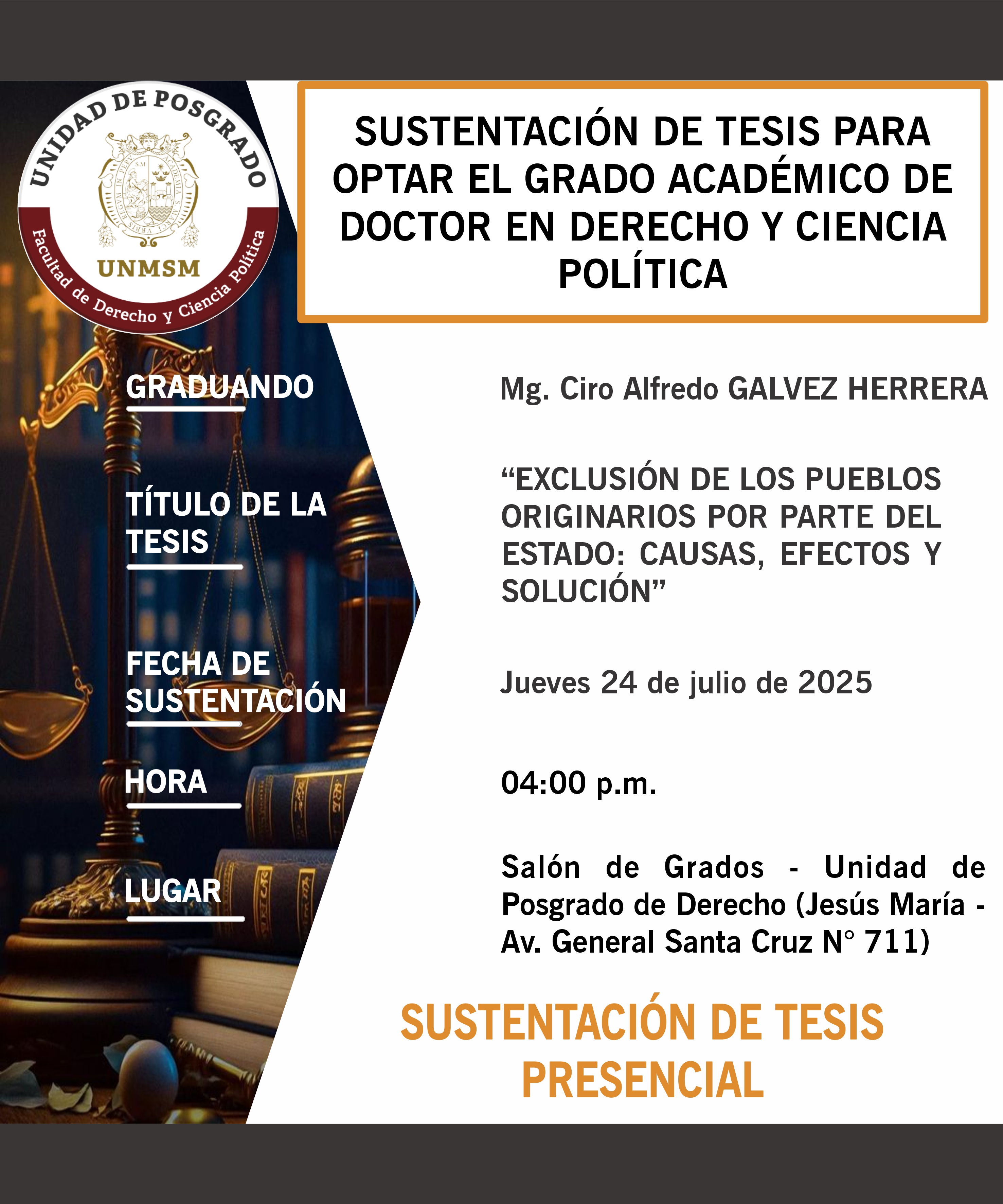 SUSTENTACIÓN DE TESIS PARA OPTAR EL GRADO ACADÉMICO DE DOCTOR EN DERECHO Y CIENCIA POLÍTICA
