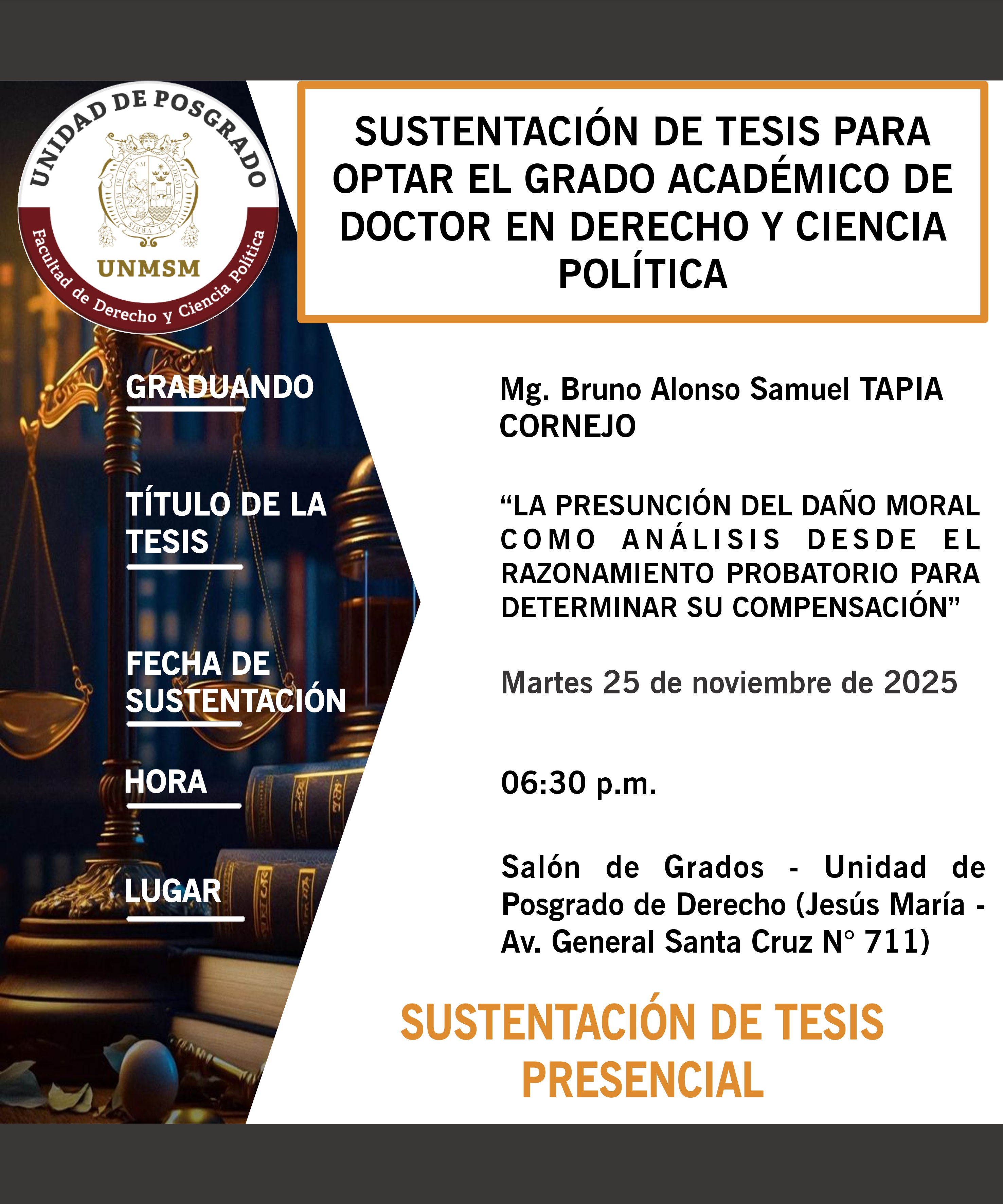 SUSTENTACIÓN DE TESIS PARA OPTAR EL GRADO ACADÉMICO DE DOCTOR EN DERECHO Y CIENCIA POLÍTICA