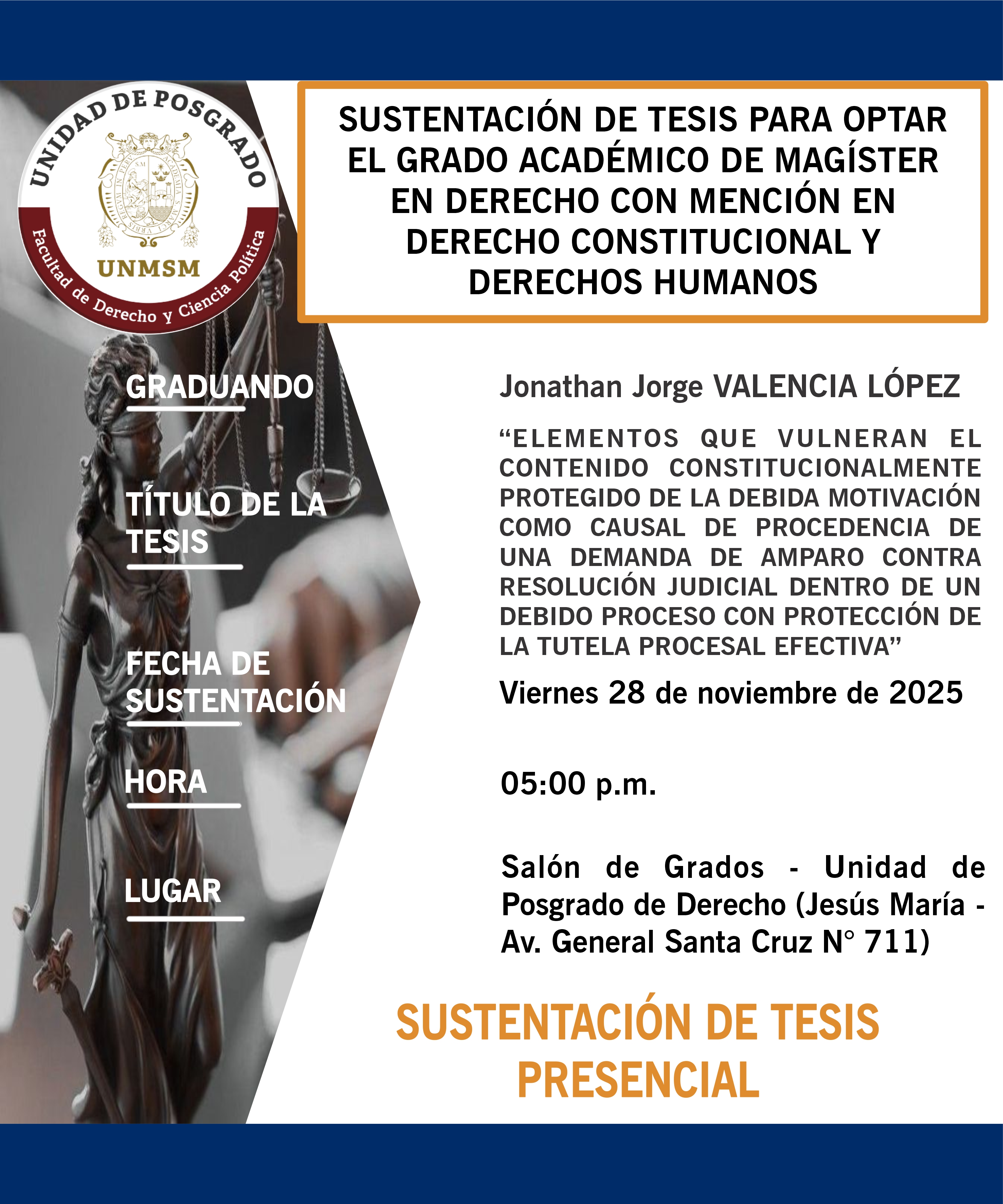 SUSTENTACIÓN DE TESIS PARA OPTAR EL GRADO ACADÉMICO DE MAGÍSTER EN DERECHO CONSTITUCIONAL Y DERECHOS HUMANOS
