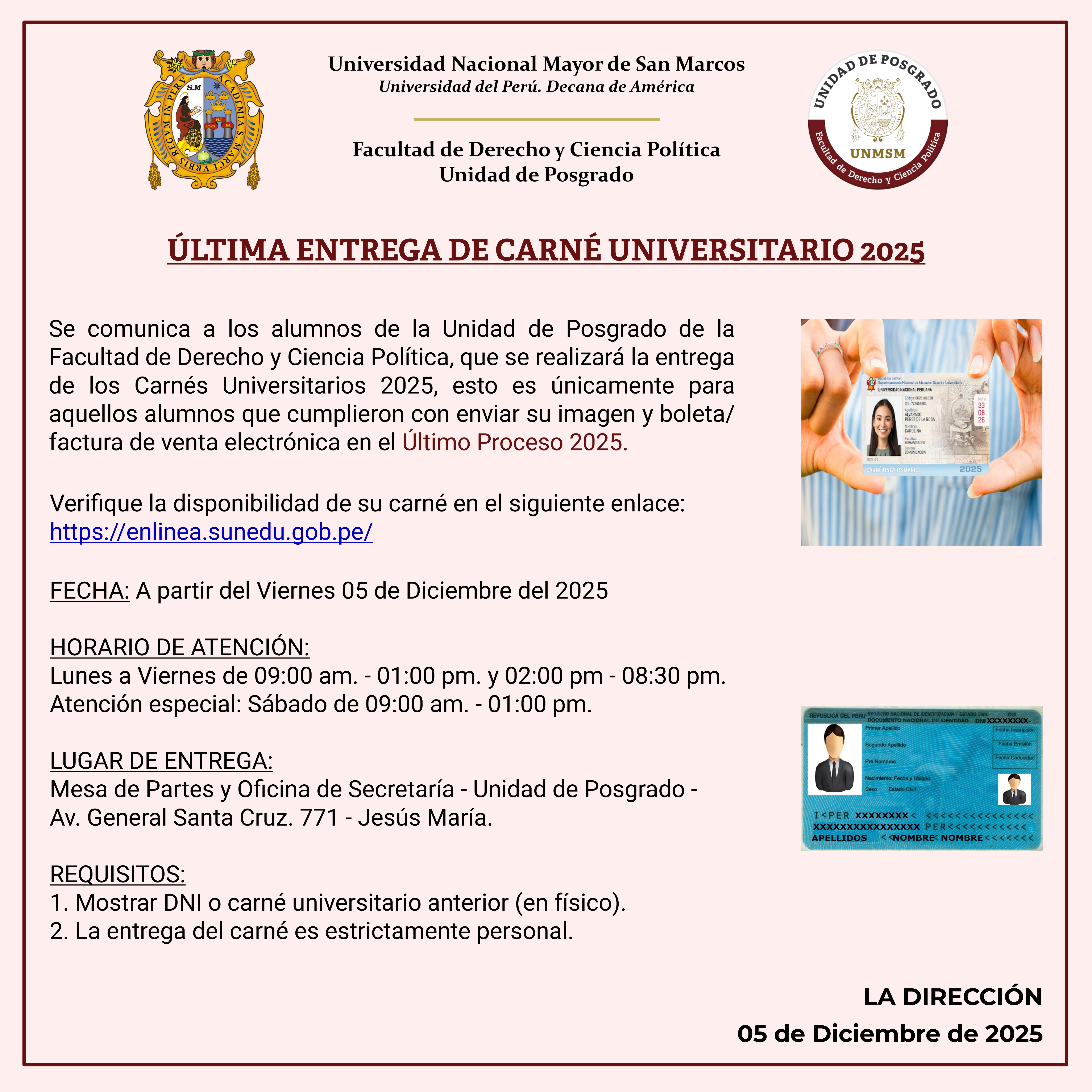 | Correo Institucional | postder@unmsm.edu.pe |